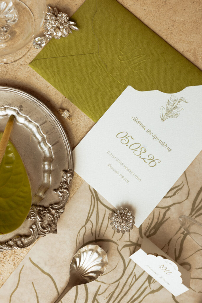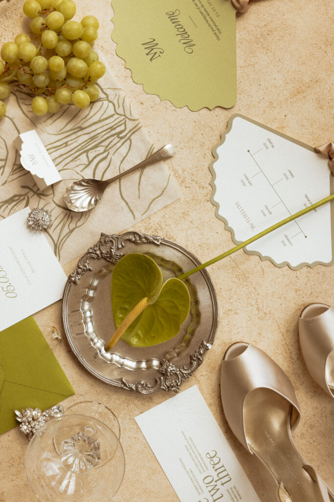 Time bends in the quiet green glow of a Matcha Matrimony. Soft, muted greens, ethereal light, and carefully considered textures coalesce into a day that feels choreographed yet effortless. Each detail, floral, linen, or stationery acts as a note in a carefully composed score, every moment framed as if by a cinematic lens. This is a wedding where design and devotion are inseparable, and where the photographs capture not just events, but the poetry of a love meticulously curated.
